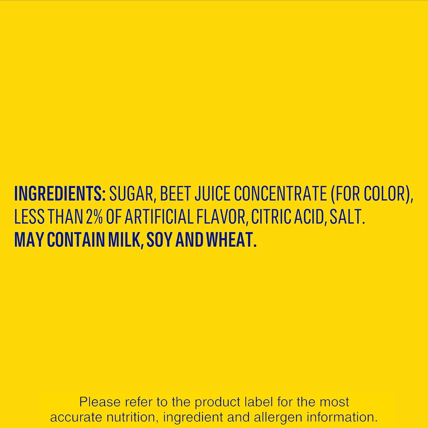Ingredients: Sugar, Beet Juice Concentrate (For Color), Less Than 2% Of Artificial Flavor, Citric Acid, Salt.